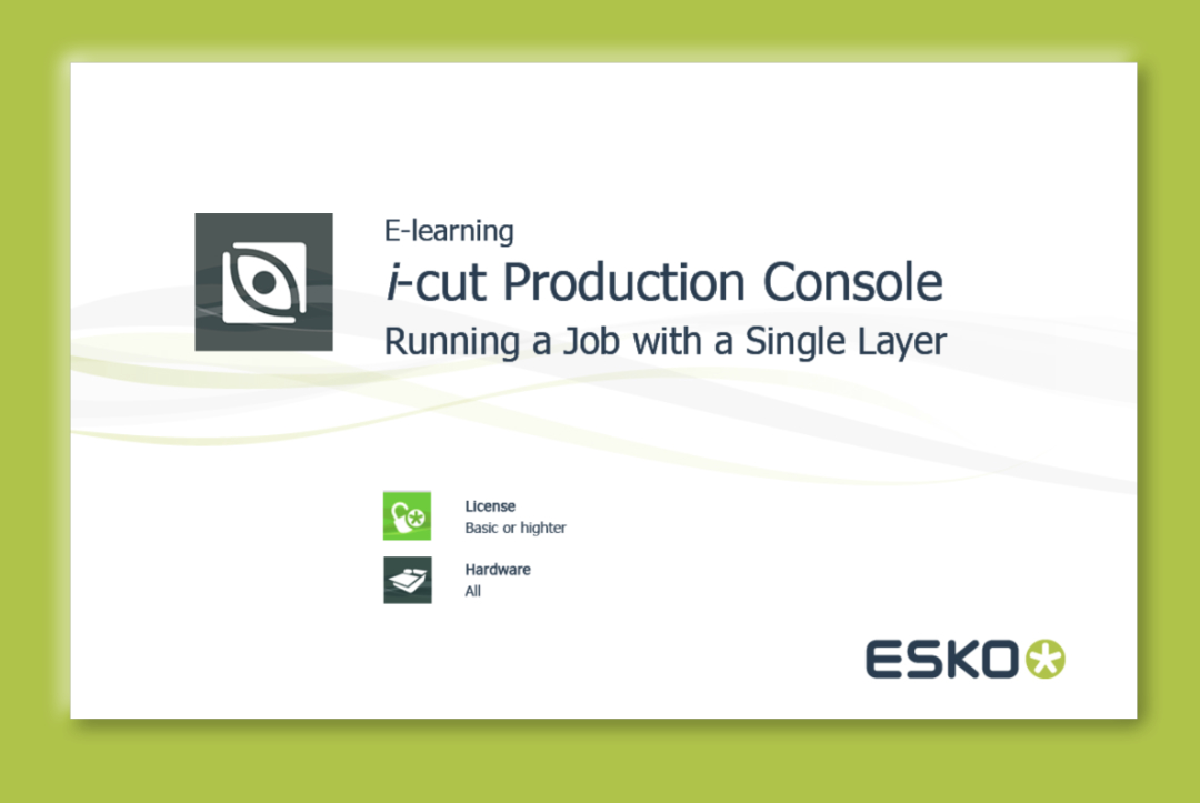 This module, developed in Adobe Captivate 7, is part of a seven-course series on Esko iCut Production Console, the application used to operate advanced digital cutting tables such as the Kongsberg X Series. Designed to introduce key workflows and system functionality, the course guides learners through real-world production tasks within the interface. Created during an early phase of adopting Captivate, this module reflects foundational design decisions and development standards established while leading a team of instructional designers, helping set the direction for the broader curriculum.